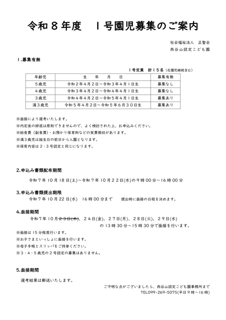 ※2号認定(3~5歳児)の募集は定員に達しているため、募集はありません。